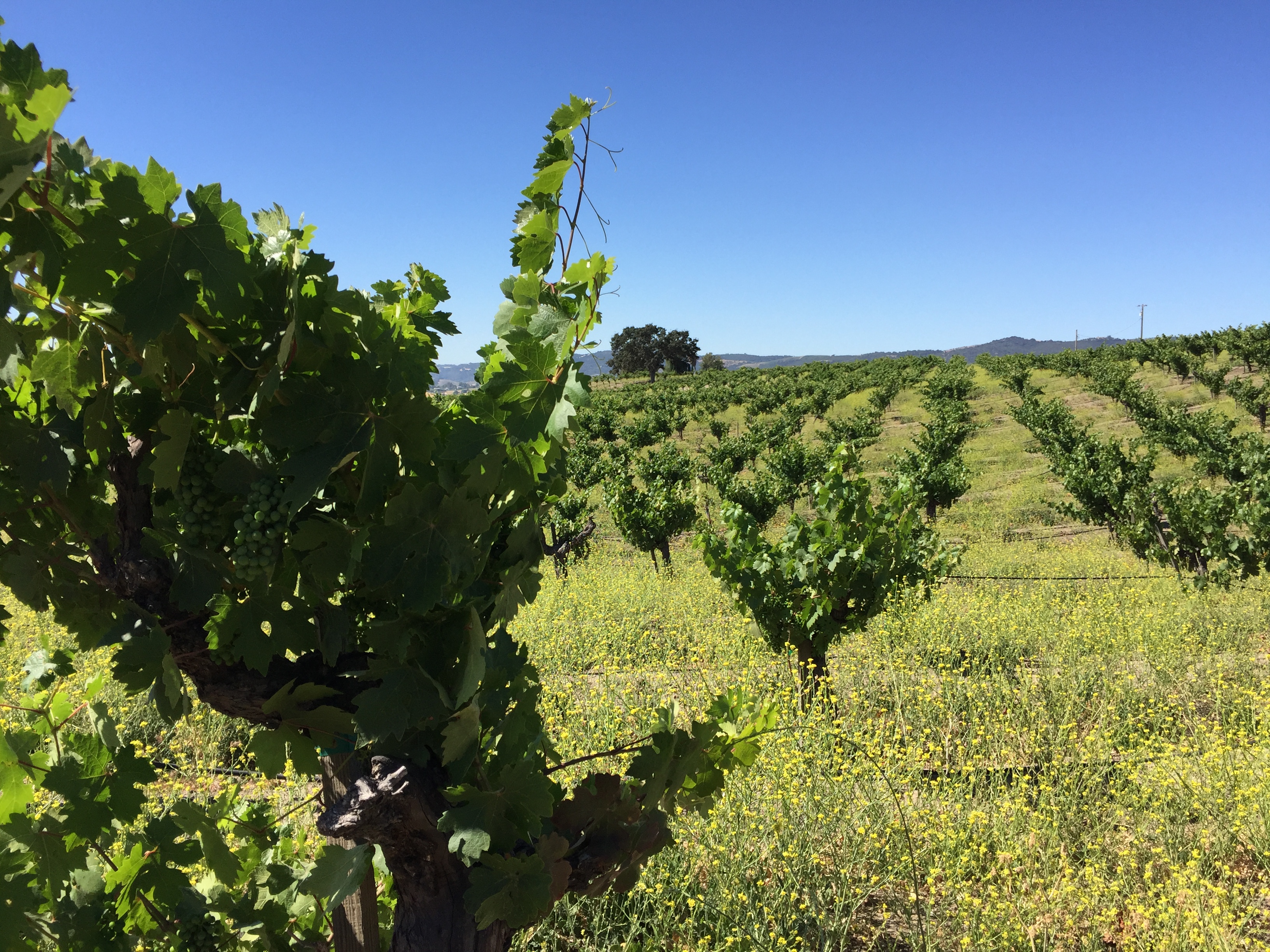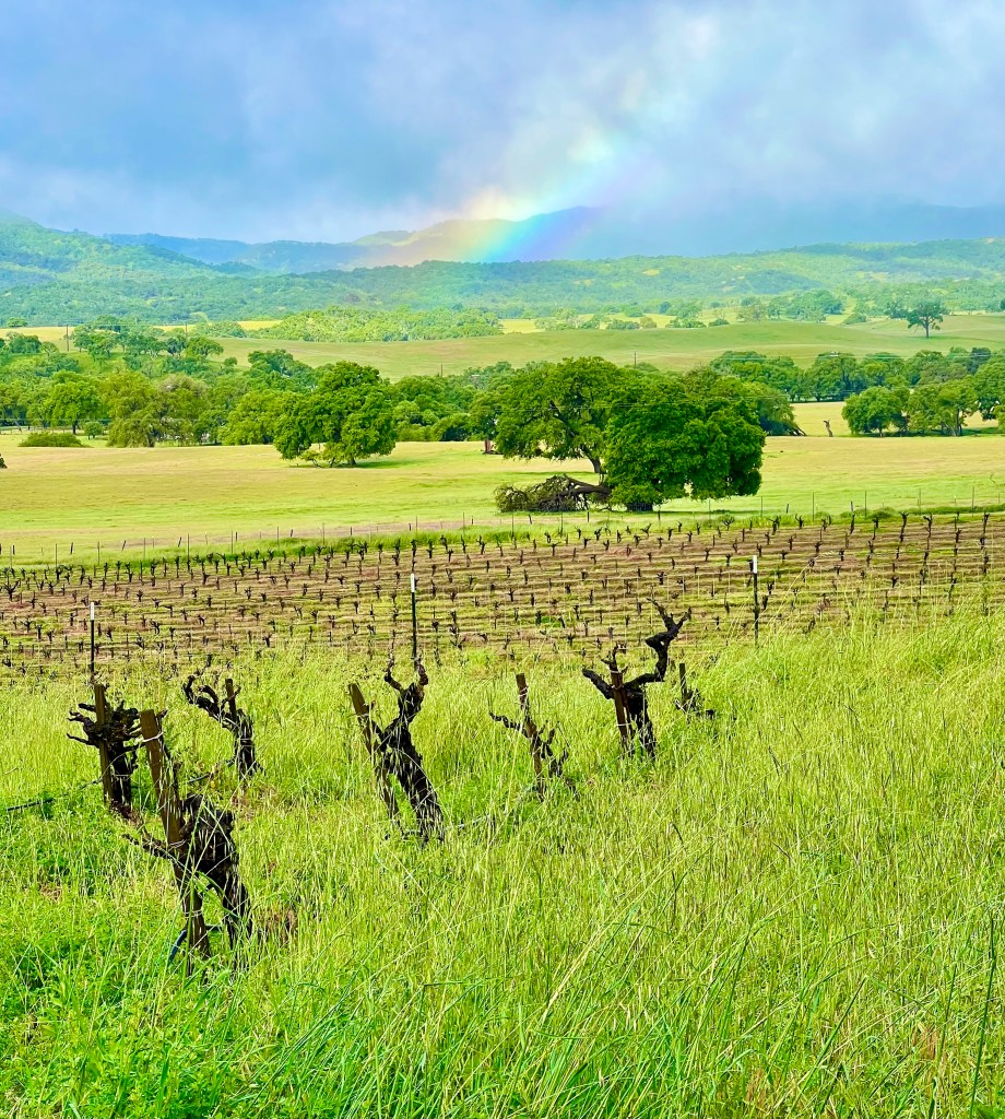 Vines are happily growing after the winter rains, June 15, 2024.Lots of rain and rainbows in April, 2024. Budbreak any day now.October 1, 2023 Late Harvest.